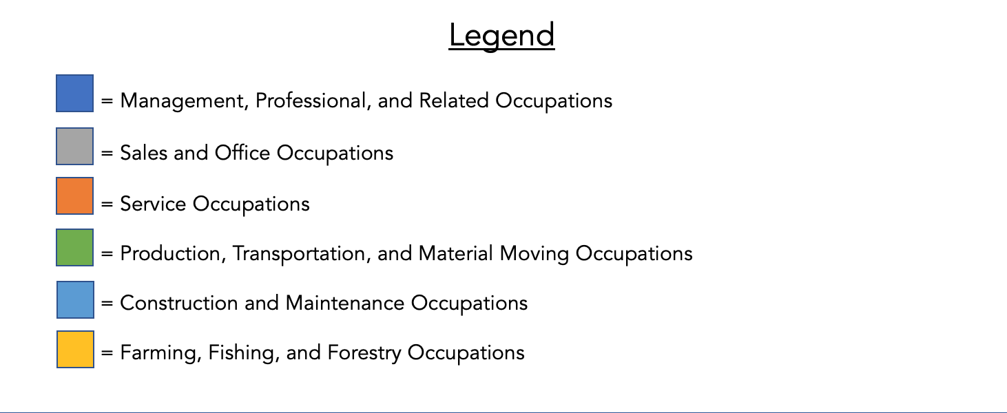 Microsoft Excel was used to convert and clean the publicly available csv data files located on the Census Bureau website (Link). Linear regression and significance testing for the occupation data was performed with RStudio. SPSS 27 was used to construct paired samples t-test to test the mean difference of state level data over time. Regression analysis and mean testing was not included in this report but can be found in the pdf paper attached to this page (Top of Page).